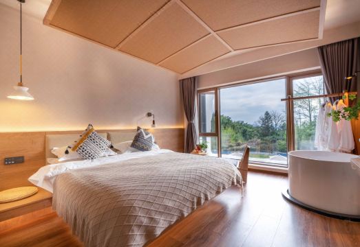 三毛说:旅途的意义不是终点,而是陪你看风景的人。我们说:好好珍惜 难得相遇惜遇·奢 度假民宿是惜遇团队在九华山的第五件作品,吸取了惜遇系列民宿前几家客人最喜欢的优点。历时一年。精心雕琢。夏夜的冰啤酒和冬天的炭火茶我们有两个院子和一个小酒吧,夏夜之时三五好友,点一盏烛火,或是在泳池边戏水玩闹时小酌一口,或是在烤炉前一边烤肉一边畅饮。如果你是一个人还可以坐在我们酒吧台的高脚椅上跟我们管家喝一杯。可以嘻嘻喧闹也可以独享这星辰皓月。这是我们想为您呈现的。我们的茶室里有一个壁炉,寒冬来临的时候窗外总是会飘起雪花,听着壁炉里柴火烧起来的劈啪作响,火光映在你的脸上,是温暖、是祝愿。此刻一壶茶就够了,窗外的青峦之上白雪皑皑。这个世界都属于你。睡到自然醒时,睁开眼就能看见的山中央空调 全屋地暖 智慧客房 智能马桶 山泉热水这些都是基础配置。最为难得的是我们房间的落地窗每一扇都是面对着对面的山,四季轮换景色不同,客房配备的金可儿床垫和定制的床品,加上这坐拥一片森林的负氧离子。一个好的睡眠真的会让人很幸福。土地的气息和自然的味道我们院子前有一块自己的菜地,每个季节阿姨们会种上不同的蔬菜瓜果,当地厨娘简简单单的炒一下,没有复杂的厨艺,每一道菜都是自然的味道。